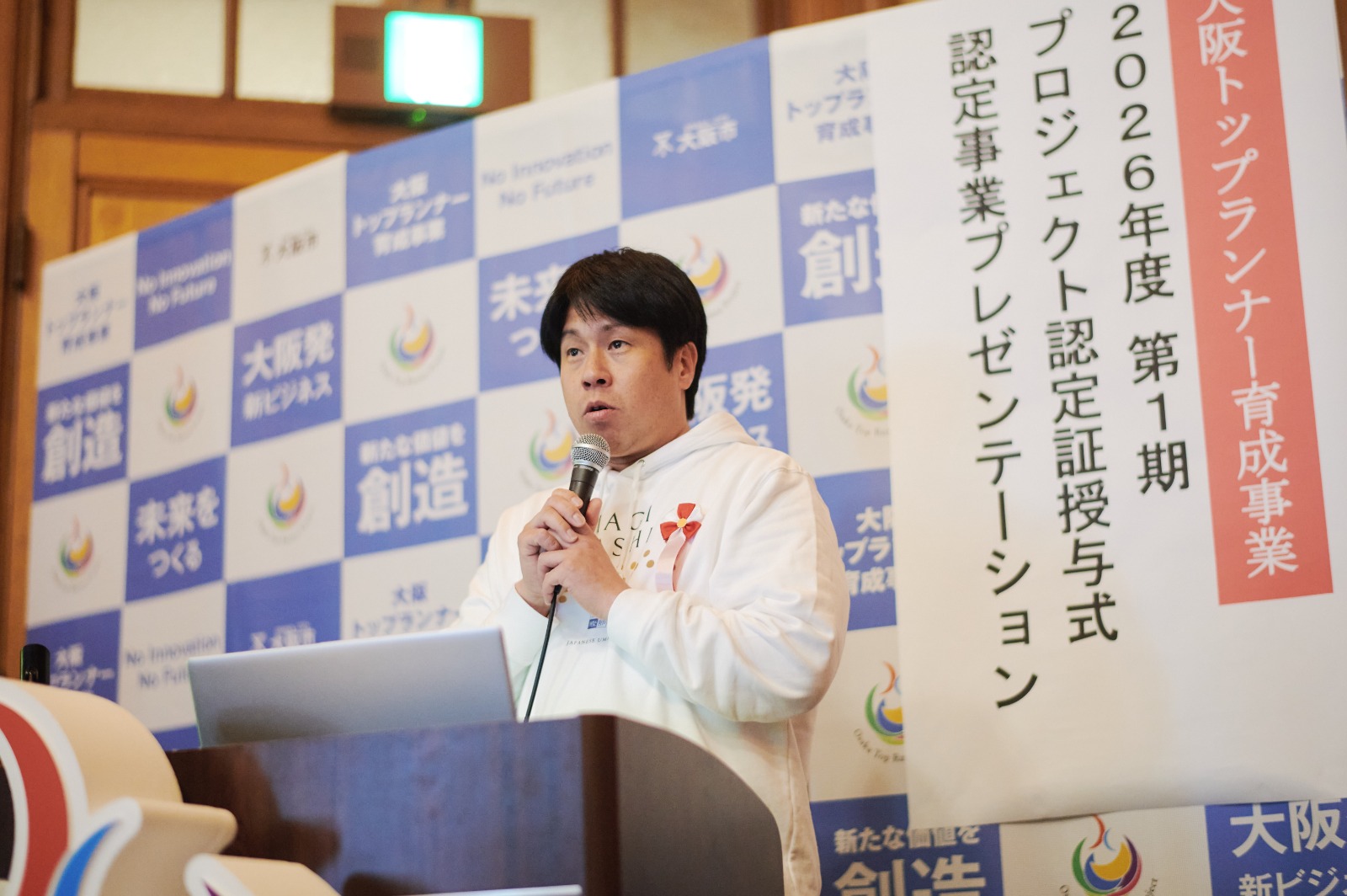2026年3月25日(水)、歴史ある大阪市中央公会堂にて、「大阪トップランナー育成事業」2026年度第1期プロジェクトとして認定された弊社プロジェクトの認定証授与式およびプレゼンテーション会に出席いたしました。
