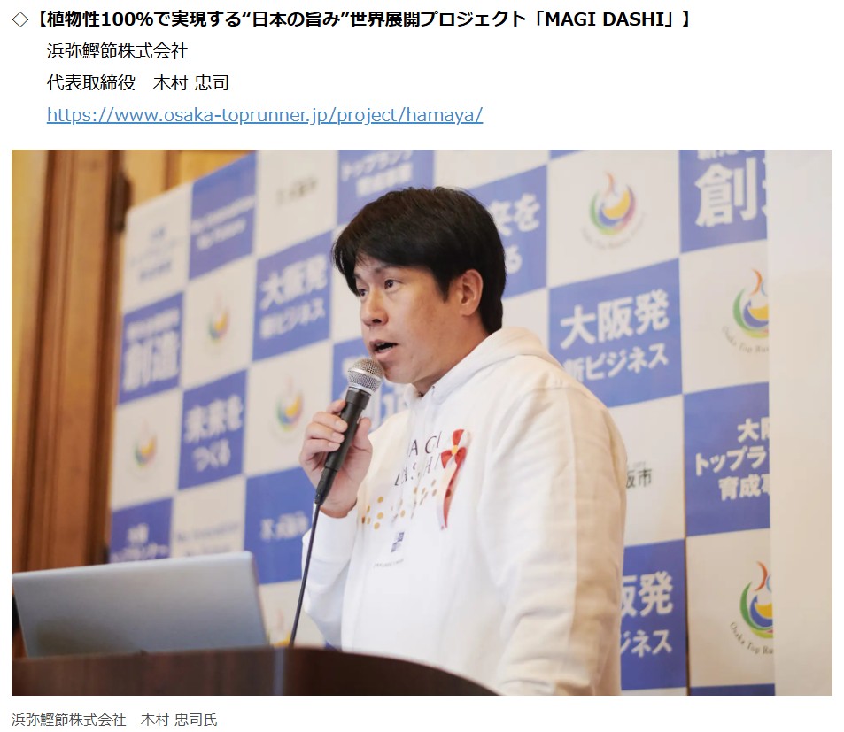 老舗鰹節屋が培った伝統技術を基盤に、植物性100%でありながら本物の旨味を追求したMAGI DASHI。その独創性と、世界市場への成長可能性について、直接お伝えする貴重な機会となりました。今回の認定を大きな糧とし、MAGI DASHIは「日本の旨み」を世界へ届ける挑戦をさらに加速させてまいります。